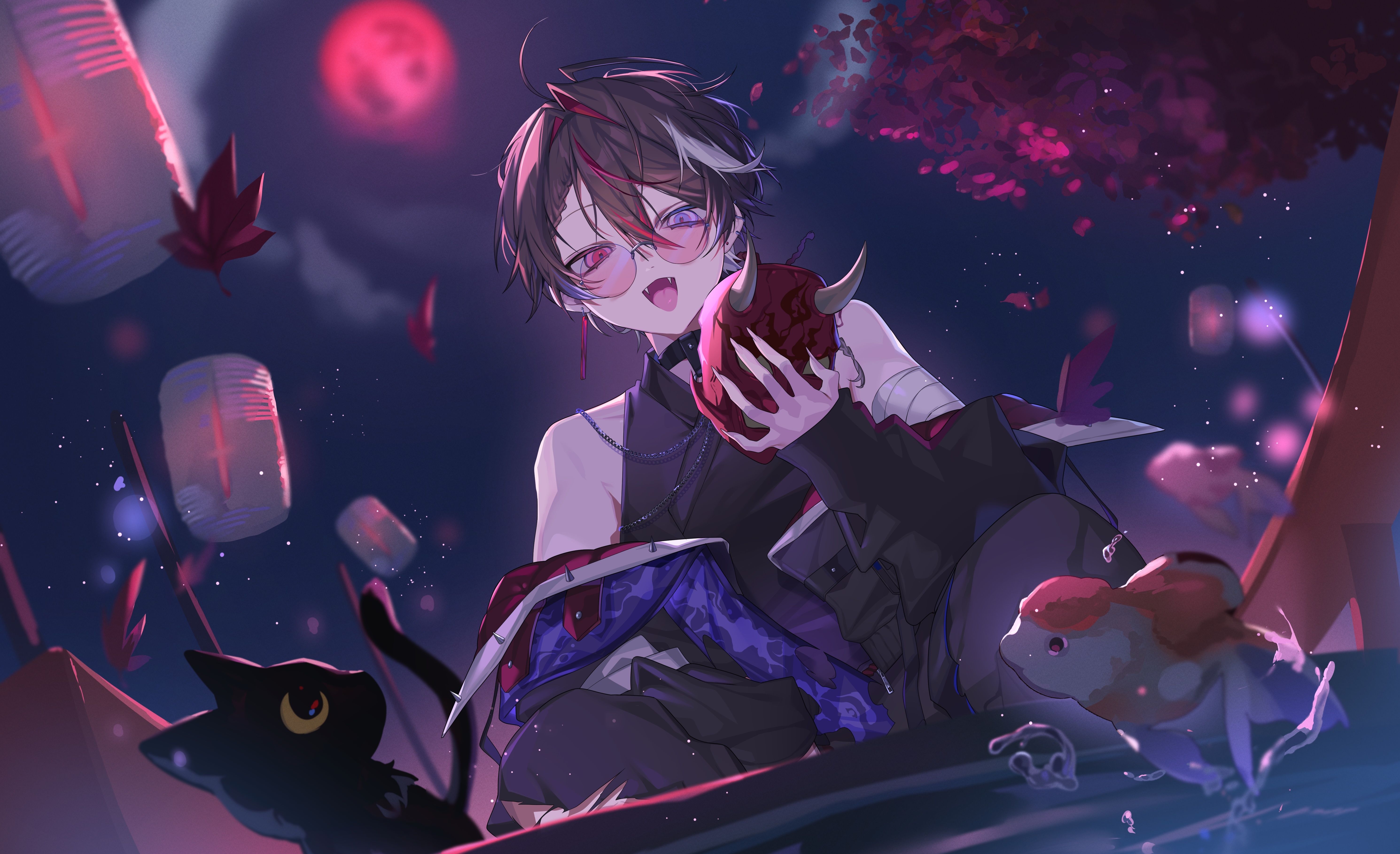 鬼と人間のハーフで、ツノがトレードマーク。YouTubeチャンネル登録者は46,888人、TikTokは2.2万人、Instagramは1.2万人を突破。